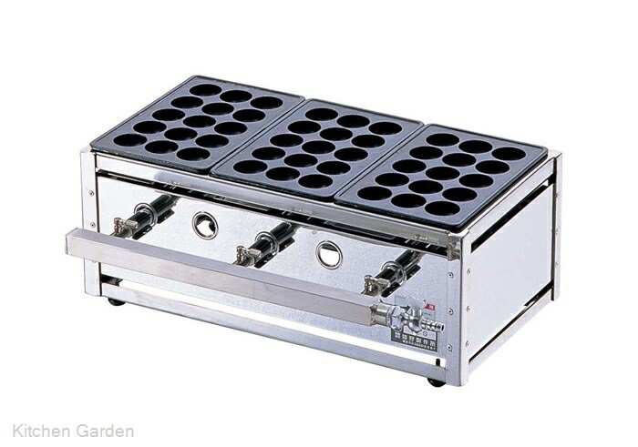 業務用ガス明石焼き器 3連 (銅製たこ鍋 8穴 φ48mm×3)【BAT-83】