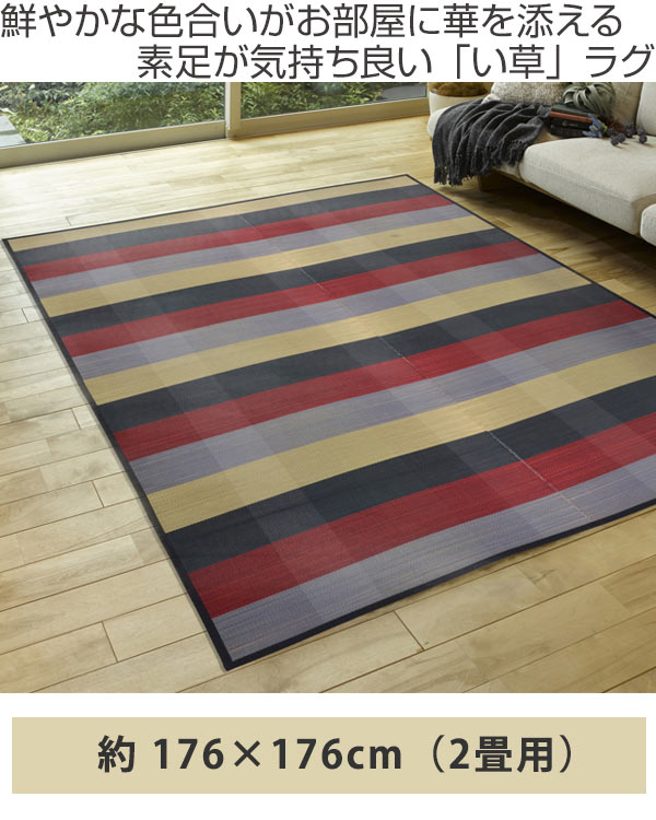 ラグ い草ラグ 176×176cm 約2畳 薄手 ござ 裏貼り チェッカー ( 送料無料 い草マット マット ラグマット い草 カーペット じゅうたん センターラグ ゴザ 畳マット いぐさ 軽量 夏用 おしゃれ )