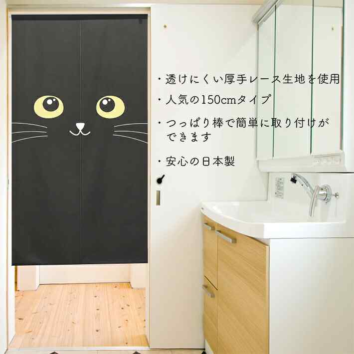 【P2倍&300円OFFクーポン配布中】のれん 黒猫 アップ 【受注生産】 85cm幅 150cm丈 おしゃれ 洋風 ブラック ねこ 転写 gs