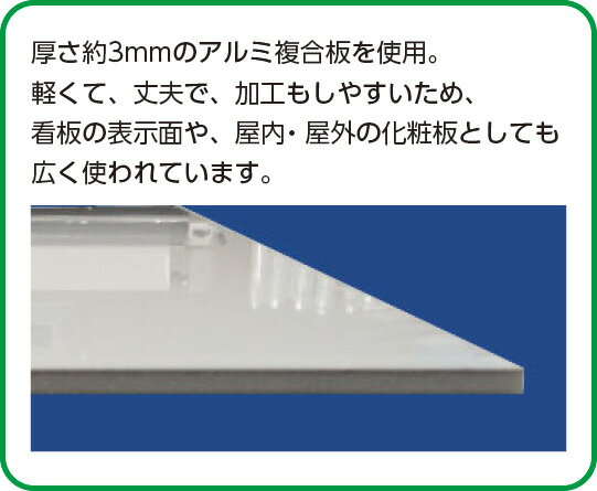 商品詳細 サイズ W100mxH300mm 材質 屋外対応の材質シートをベースに、溶剤インク印刷・UVカットラミ加工をし、アルミ複合板に貼り付けています。