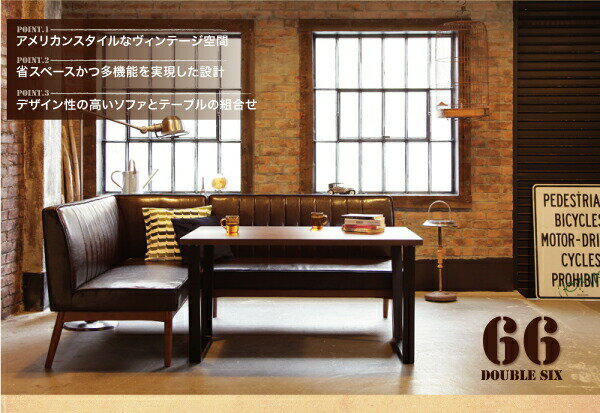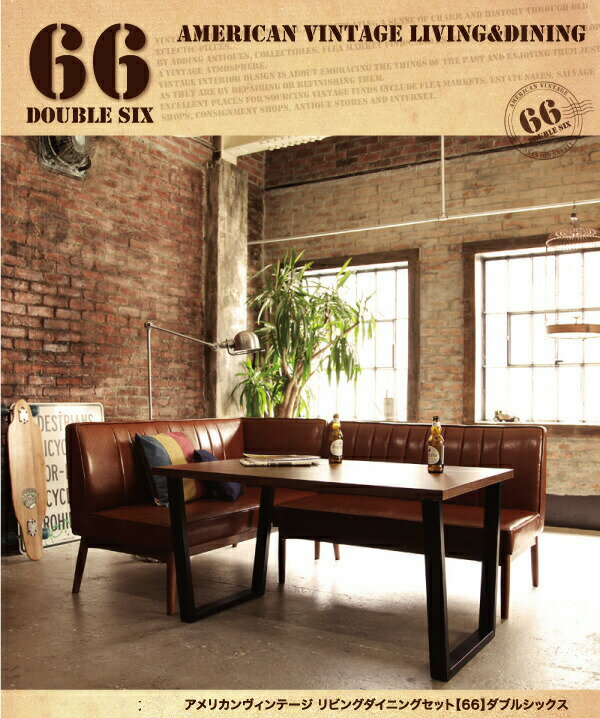 【P5倍★本日12時〜大サービス!】アメリカンヴィンテージデザイン リビングダイニングセット ダブルシックス 4点セット(テーブル+ソファ1脚+アームソファ1脚+チェア1脚) 左アーム W150