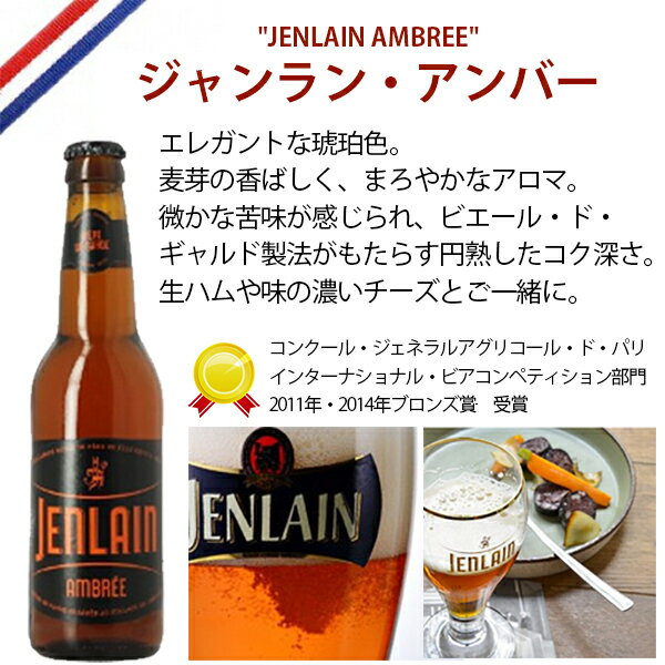 原材料:麦芽、小麦、糖類、ホップ 容量:330mlアルコール:6.1% 賞味期限:2020/7/31コンクール・ジェネラルアグリコール・ド・パリインターナショナル・ビアコンペティション部門2012年金賞 2014年銅賞 2015年銀賞 受賞 ブラッセリー・デュイク「ジャンラン・アンバー」"JENLAIN AMBREE"エレガントな琥珀色。