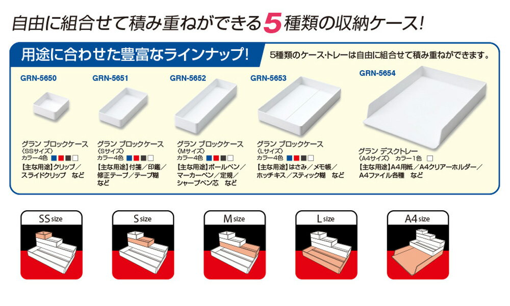 「グラン」シリーズのケース同士を自由に組み合わせて収納することができます。