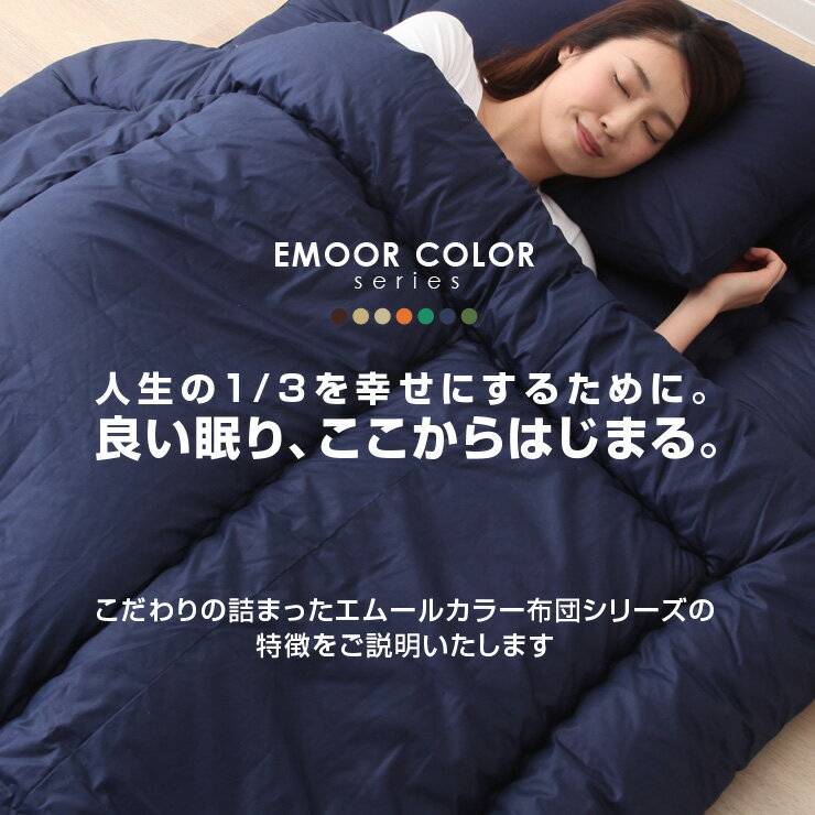 セット内容 点数 サイズ 中身/生地素材 掛け布団1約150×210cm(約1.5kg) 中身:ポリエステル100%(帝人マイティトップ2 50%)生地:綿100%敷き布団1約100×210cm(約3.0kg)中身(芯):ポリエステル硬わた中身(巻わた):ポリエステル100%(帝人マイティトップ2 50%)生地:綿100%枕1約43×63cm(約0.5kg)中身:ポリエステル100%生地:綿100%カラー ビターブラウン・モカベージュ・パッションオレンジ・ミルクホワイト・ネイビー・オリーブ製造国 日本製(国産) 配送送料無料となりますが、北海道および九州のお届け先のお客様は税込700円の差額運賃、沖縄・離島のお客様は別途追加料金が発生します。