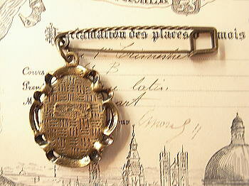 大きめのピンからヘッドが下がるデザインのピンブローチは、 帽子やバッグのワンポイントや、 ボレロの合わせを留めたりするのにも便利です♪