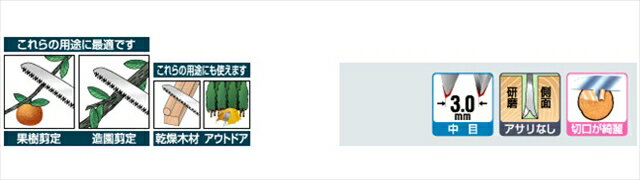 商品内容 メーカー: 神沢精工株式会社 原産国:日本 刃長:150mm ピッチ:3.0mm 目の粗さ:中目 用途 果樹剪定、剪定作業、乾燥木材、アウトドア ・「鋸」の概念を塗り替えたまったく新しい発想で遥かに次元の違う切味と機能性を兼ね備えた究極の「鋸」です。