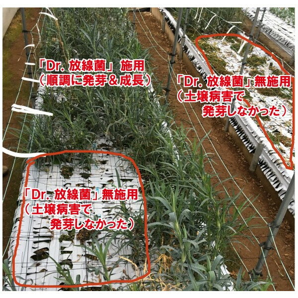 概要 フザリウム、リゾクトニアなどの病原性糸状菌に強い拮抗性のある放線菌を自然界から選別し、独自の製法で高密度で製品化に成功しました。