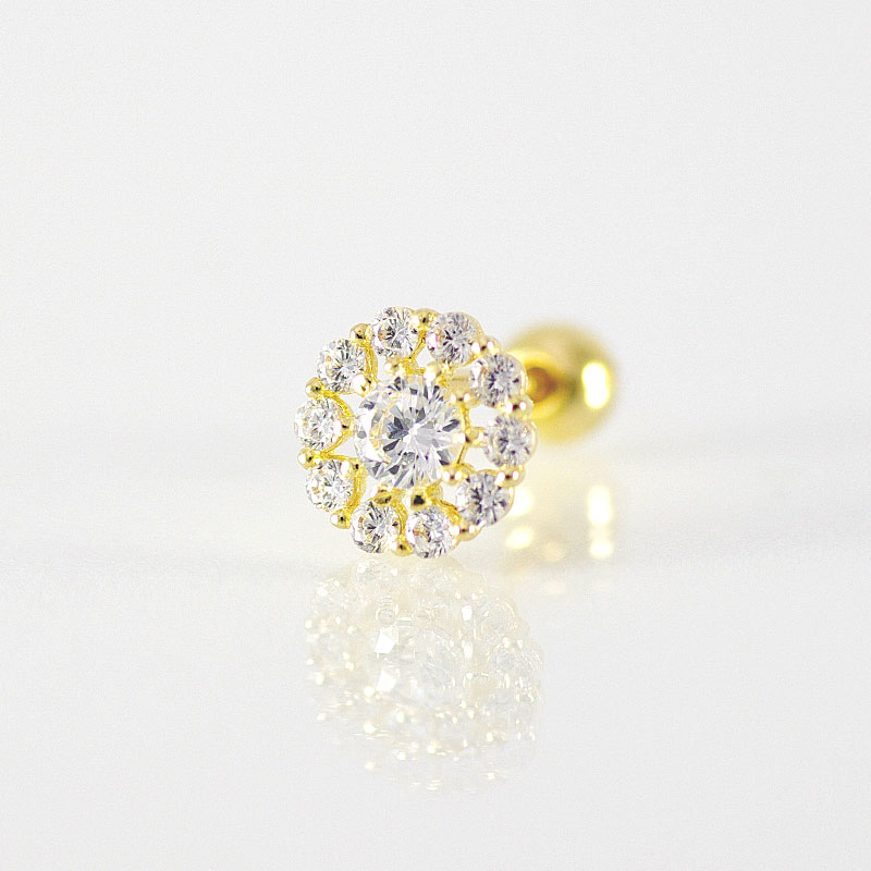 【サイズ】 太さ:20G / 0.8mm 内径:6mm ボールサイズ:3mm デザインサイズ:6×6mm 素材:14金イエローゴールド (ネジを作る強度を確保する為) キュービックジルコニア(CZ) ◆こちらの商品はお求めやすい【1個】売りとなります。