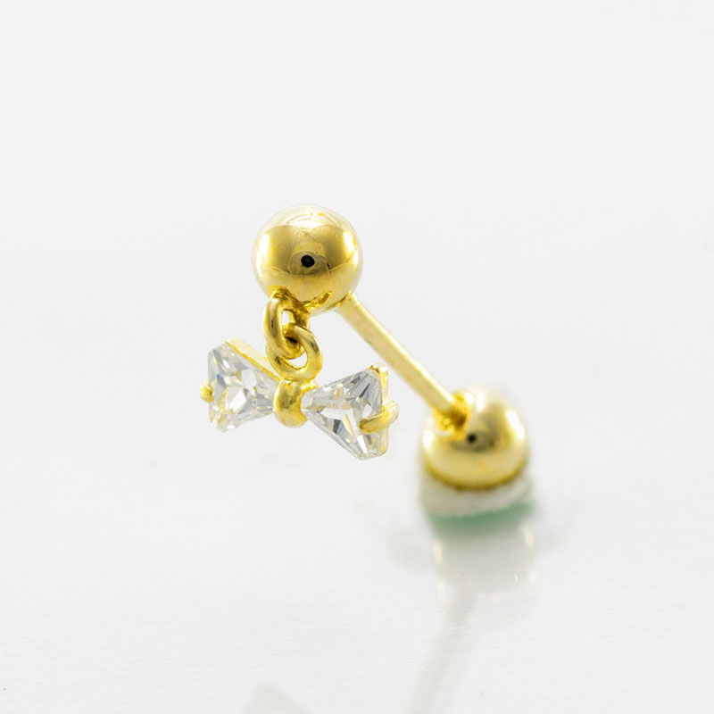【サイズ】 太さ:20G / 0.8mm 内径:6mm ボールサイズ:3mm チャームサイズ:6mm 素材:14金イエローゴールド (ネジを作る強度を確保する為) ジルコニア ◆こちらの商品はお求めやすい【1個】売りとなります。