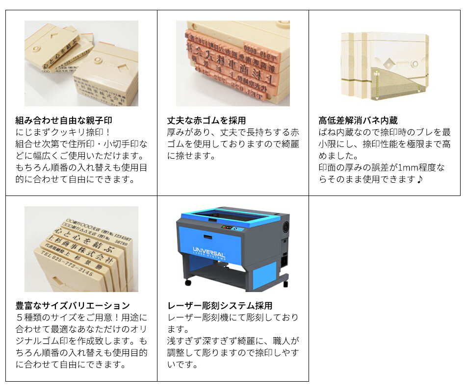 組合せ次第で住所印・小切手印などに幅広くご使用いただけます。